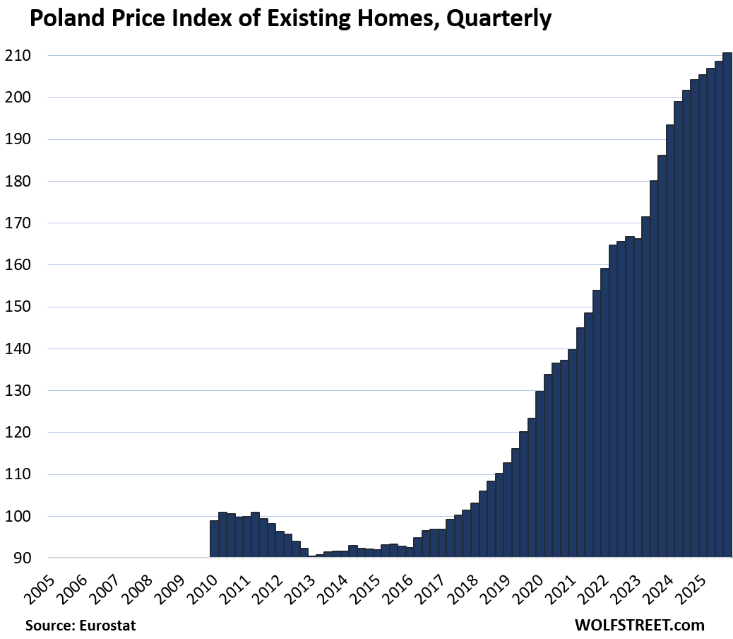Hungary dominates short-term: 23.7% YoY, 4.8% QoQ, and 308% since 2010. Low base effects from post-2008 crash, plus Orbán’s subsidies, drive this. Portugal (175% since 2010, 20.9% YoY, 4.6% QoQ) benefits from golden visas and remote workers, but locals gripe at 10x income multiples in Lisbon.