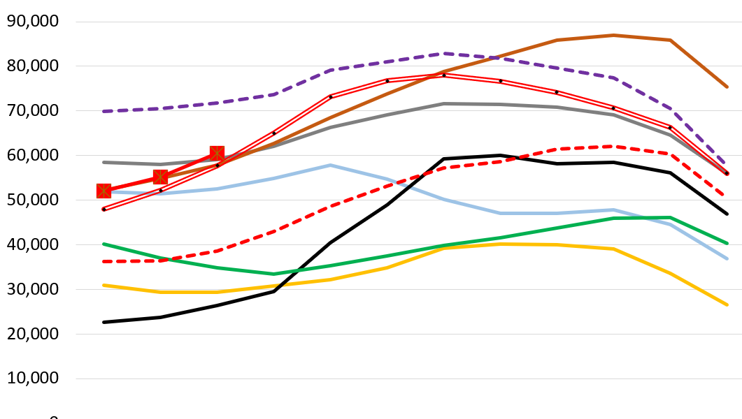 This mirrors 2018-2019. Back then, Fed rate hikes pushed 30-year mortgages to 5% by late 2018. Inventories swelled until the Fed pivoted, cutting rates in mid-2019 as inflation cooled. Sales rebounded; listings eased.