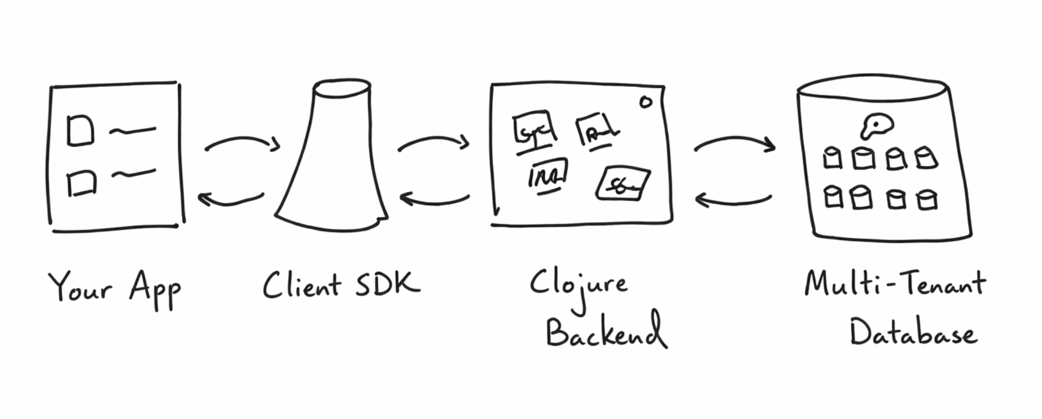 Frontend code in React hooks it via their SDK: useQuery('todos', { where: { userId: user.id } }). Mutations propagate instantly across clients.
