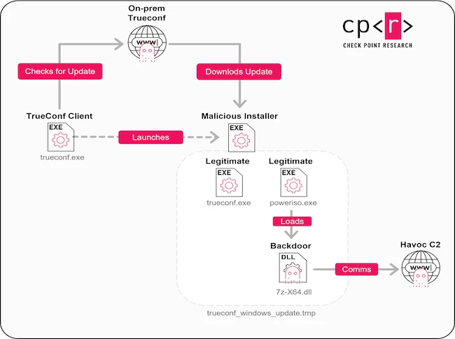 The vulnerability sits in TrueConf’s Windows client update handler. Attackers triggered CVE-2026-3502, a use-after-free flaw rated CVSS 8.1 (high severity), during the update check. Normally, the client pings TrueConf’s servers for patches. Here, compromised servers served a malicious updater executable disguised as legitimate.