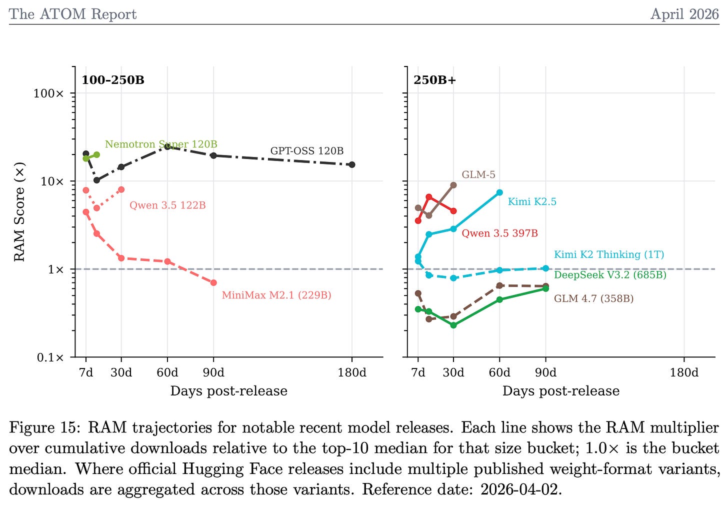 Nathan Lambert just dropped the ATOM Report, a data-packed analysis of the open language model ecosystem. Released alongside the ATOM Project’s manifesto pushing U.S. investment in open models, this arXiv paper (2604.07190) tracks downloads, inference market share, and adoption trends. It highlights GPT-OSS’s surge, China’s mid-tier players like Moonshot, Z.ai, and MiniMax grabbing ground, and early U.S. progress. Why does this matter? Closed models from Big Tech centralize power; open ones enable scrutiny, customization, and resilience against censorship or failures. In security terms, auditable weights beat black boxes every time.