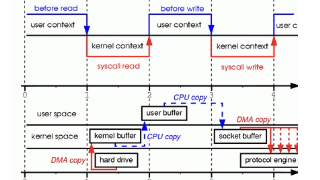 Every memcpy costs dearly. On modern x86 CPUs like Intel Ice Lake or AMD Zen 4, unaligned copies trigger microcode stalls lasting 10-50 cycles per 64-byte chunk. For a 4KB page, that’s thousands of wasted cycles per operation. Worse, it flushes cache lines, slowing hot paths like query execution. A 2019 Linux Journal analysis (linked in sources) diagrams a typical read: DMA to kernel ring buffer (copy 1), kernel to page cache (copy 2), page fault to user mmap or read() (copy 3), then app-internal copies (4+). Writes reverse this pain.